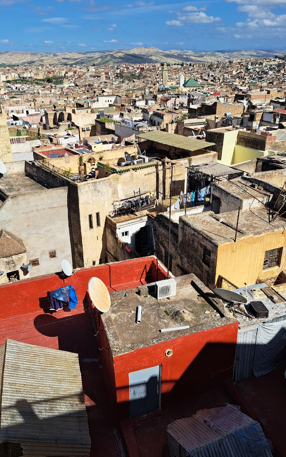 Because these paths are sometimes open to the sky one might imagine that a huge, malevolent arachnoid creature could be creeping along the rooftops, moving much faster and less restrictedly than a human-scaled individual might at street level. Of course I haven't seen any spawn of Ichor but at times I've felt the oppressiveness of the confines. Never have I been closer to apprehending what Frodo and Sam we're experiencing in Sauron's fortress than when spending a couple of days in the Medina in Fes.